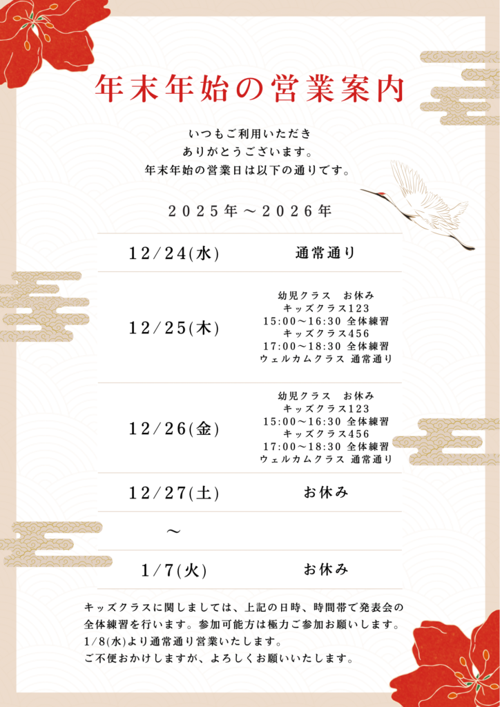 年末年始休業のお知らせ